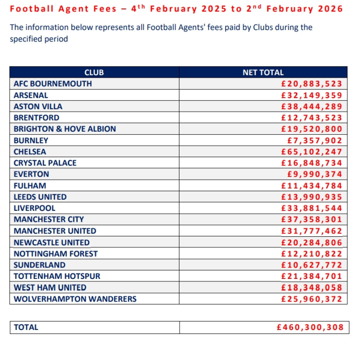 直播吧04月01日讯英足总官方公布了2025年2月-2026年2月英超球队支付给牙东说念主的佣金,B体育(BSports)设想4.6亿镑,米兰体育切尔西以6510万镑断层领跑。