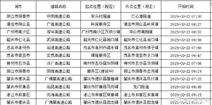 竣事2月22日10时,milan(中国)官方网站全省高速通行浮松长度逾越5公里,时代逾越30分钟的点段共12个,区别在韶关市、茂名市、清远市、湛江市、阳江市、广州市、梅州市、肇庆市,路段包括广连高速、济广高速、沈海高速等。