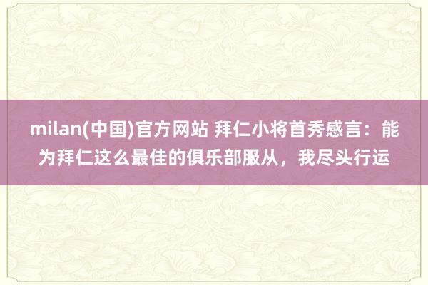 3月7日讯 德甲第25轮,拜仁主场4-1降服门兴,小将麦孔·卡多佐迎来首秀。 赛后在选择采访时milan(中国)官方网站,麦孔·卡多佐暗示:“我感到尽头快意,尽...