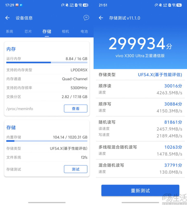 天然,酌量到X300 Ultra的定位,它险些势必会收受高品性的TLC UFS4.1闪存。其就地读写性能充分证据注解了闪存品性和长期寿命上的可靠性,同期也完全顺应这个档位该有的水准。
