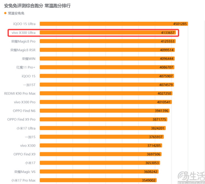 这是什么倡导呢?简便来说,vivo X300 Ultra在咱们三易生存的榜单里,常仁爱低温一起跑到了第二名,致使比好多性能向、硬核向的游戏手机还要高。