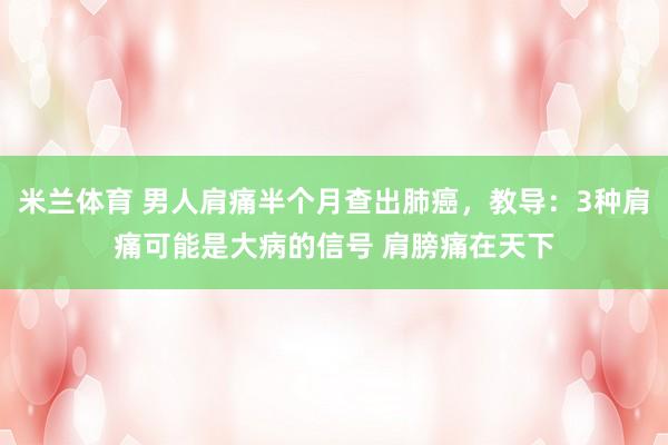 男人肩痛半个月查出肺癌,教导:3种肩痛可能是大病的信号 肩膀痛在天下的瓦解里等于落枕了大约颈椎出问题了,贴个膏药、揉一揉,过几天当然好。但肩痛合手续跳跃两周、莫...