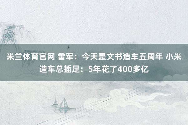 3月30日,小米创办东说念主,董事长兼CEO雷军发微博,有网友辩驳称,今天是特地的一天。随后雷军回话称:“今天是小米文书造车五周年。” 据了解,2021年3月3...