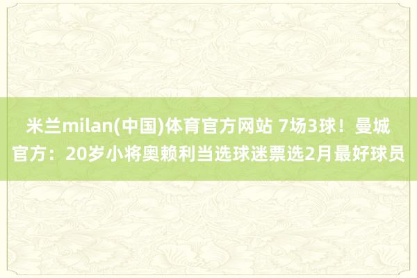 3月7日讯 曼城官方晓喻20岁小将奥赖利当选球迷票选2月最好球员。 已往这个月米兰milan(中国)体育官方网站,奥赖利共为曼城出战7场比赛,得到了3粒进球。 ...
