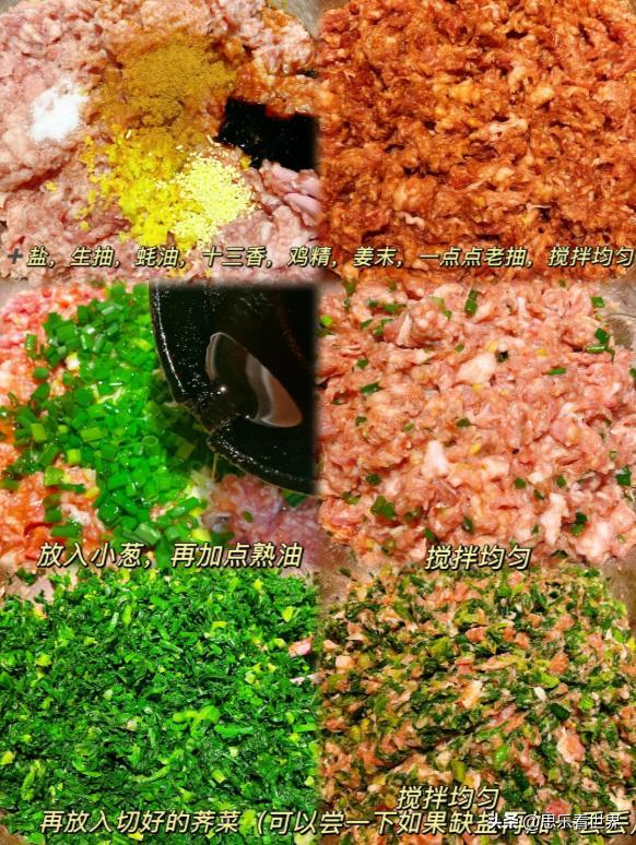 荠菜、前腿肉、葱姜、盐、生抽、蚝油、十三香、鸡精、老抽、熟油、花椒